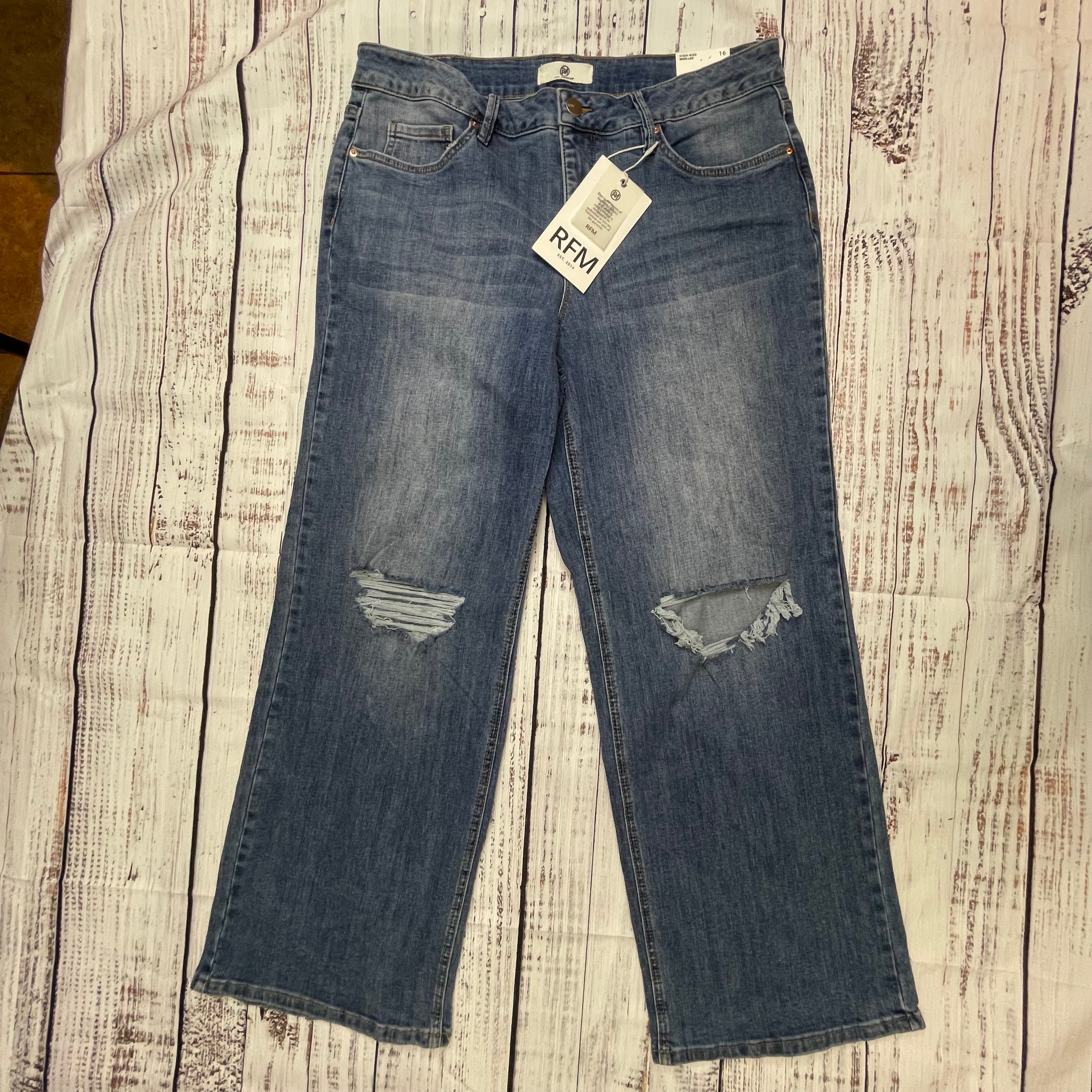 Brand new with tags! RFM (Refined by Madewell) Chloe jeans in size 16. These premium denim jeans feature a classic medium-blue wash with subtle distressing for an authentic, lived-in look.