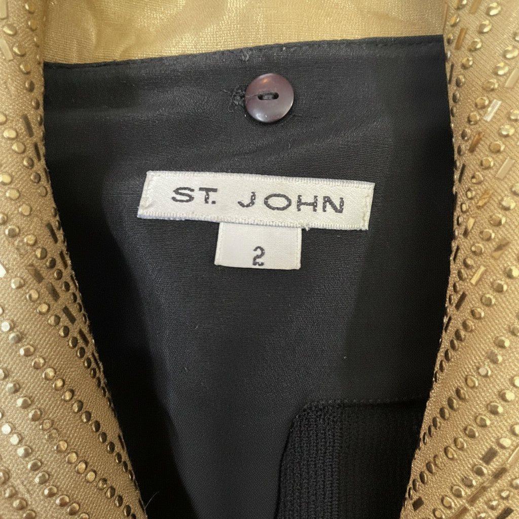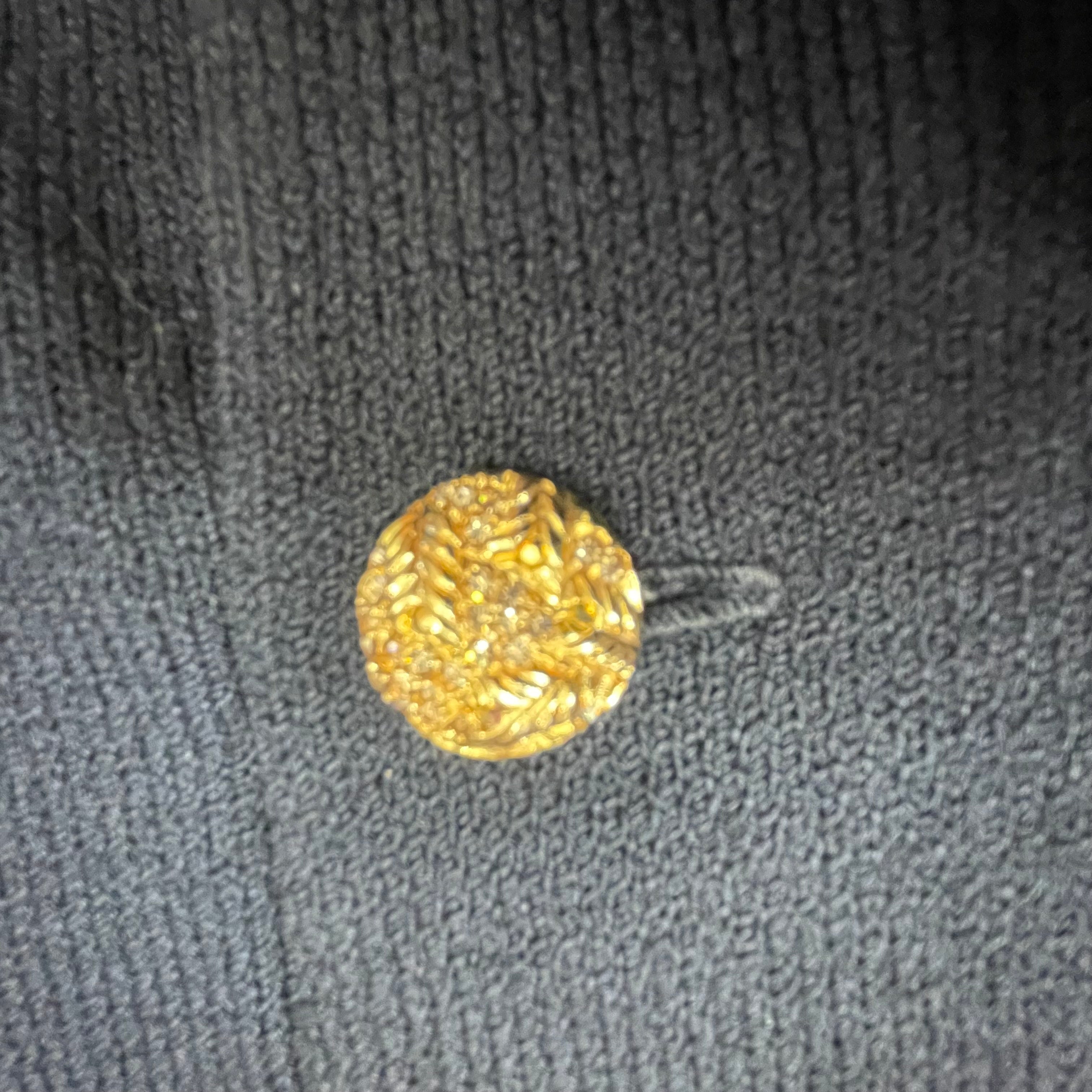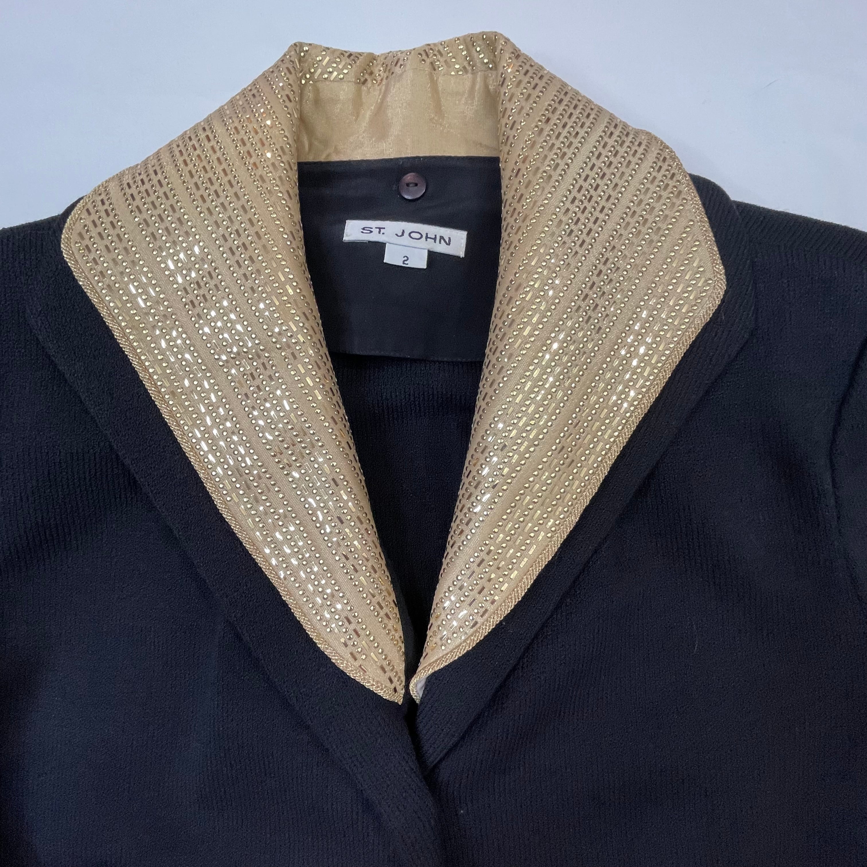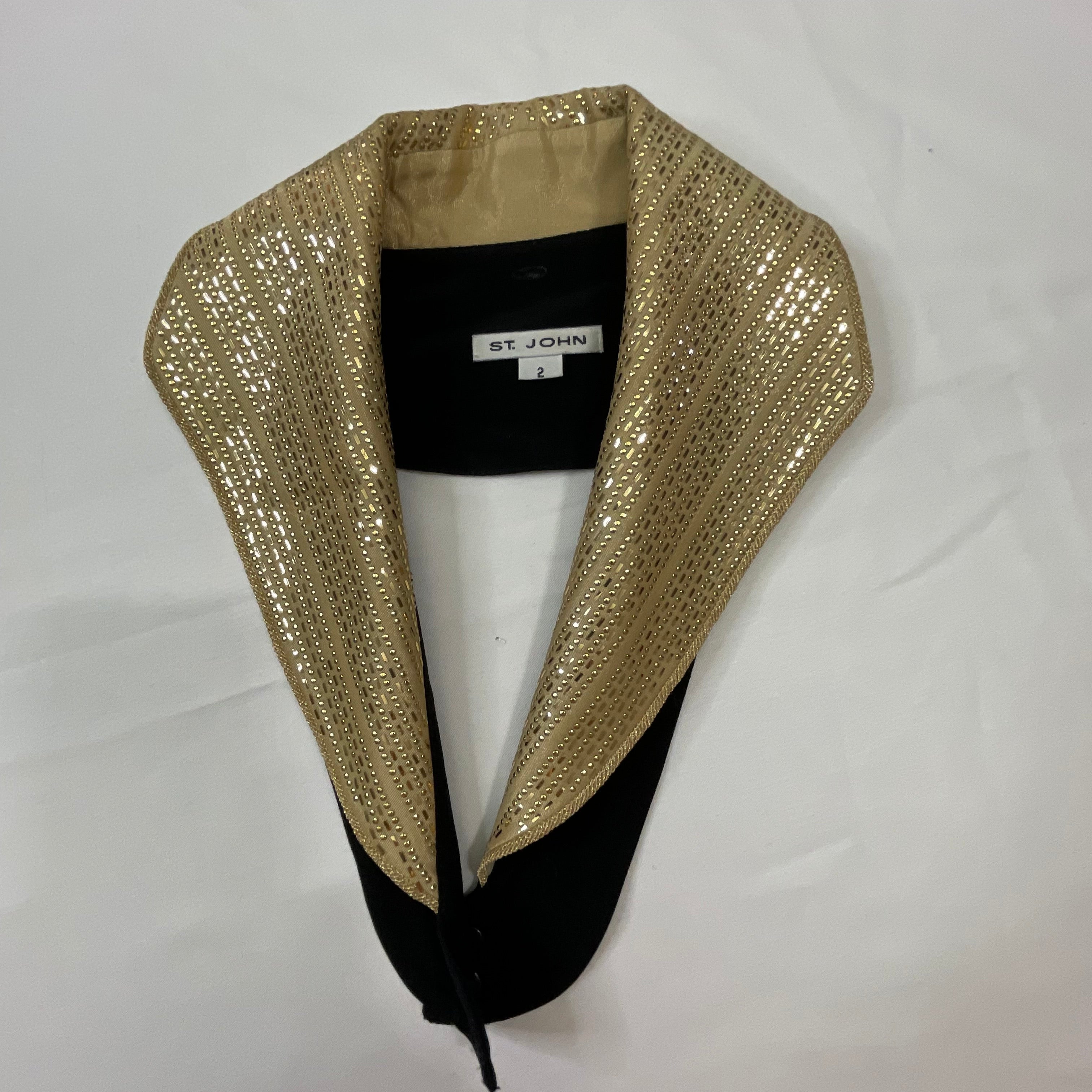 St. John Black Knit Jacket with Gold Collar & Removable Details - Size 2