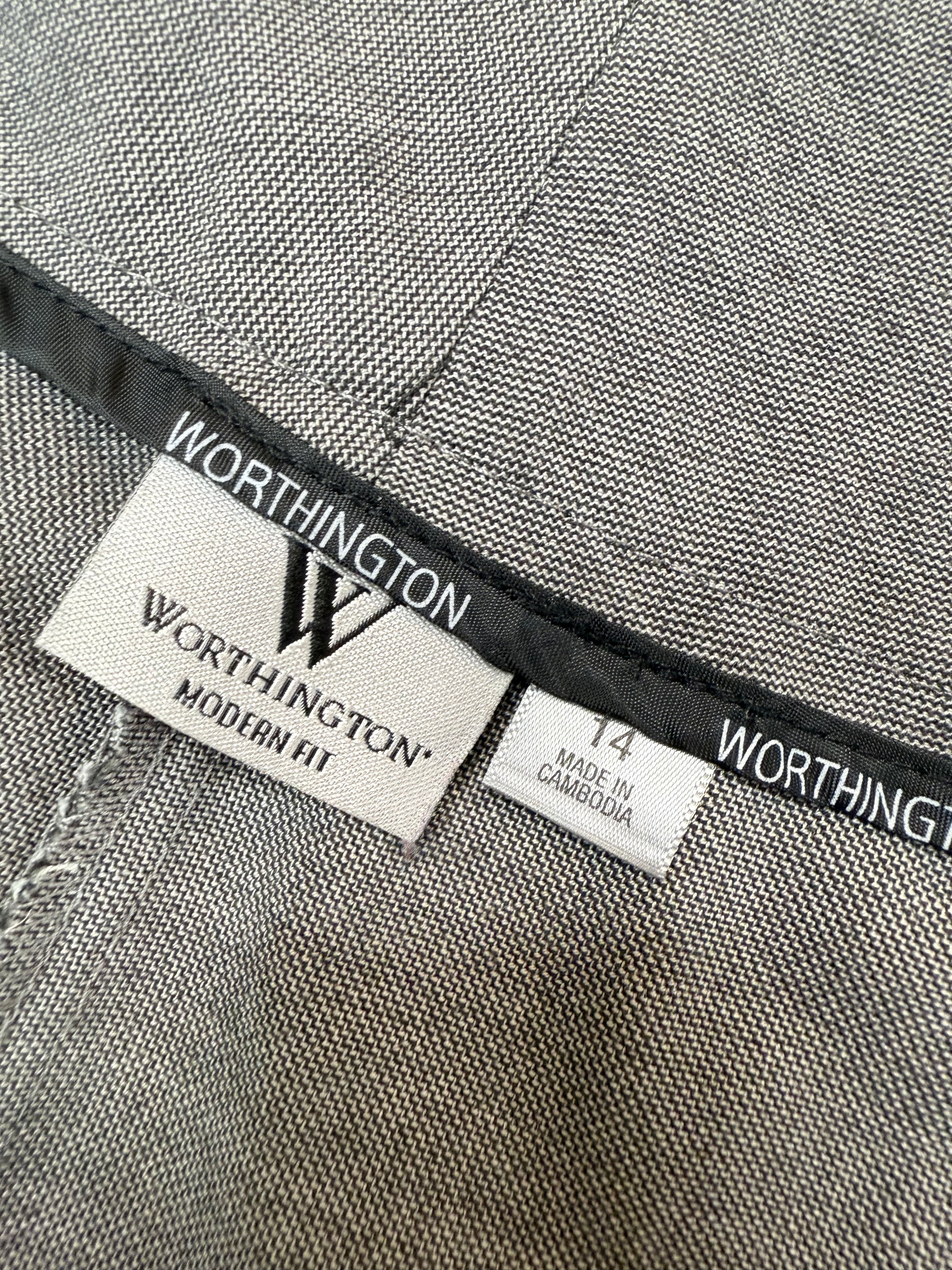Worthington Modern Fit Trousers Pants - Size 14 - Gray Houndstooth