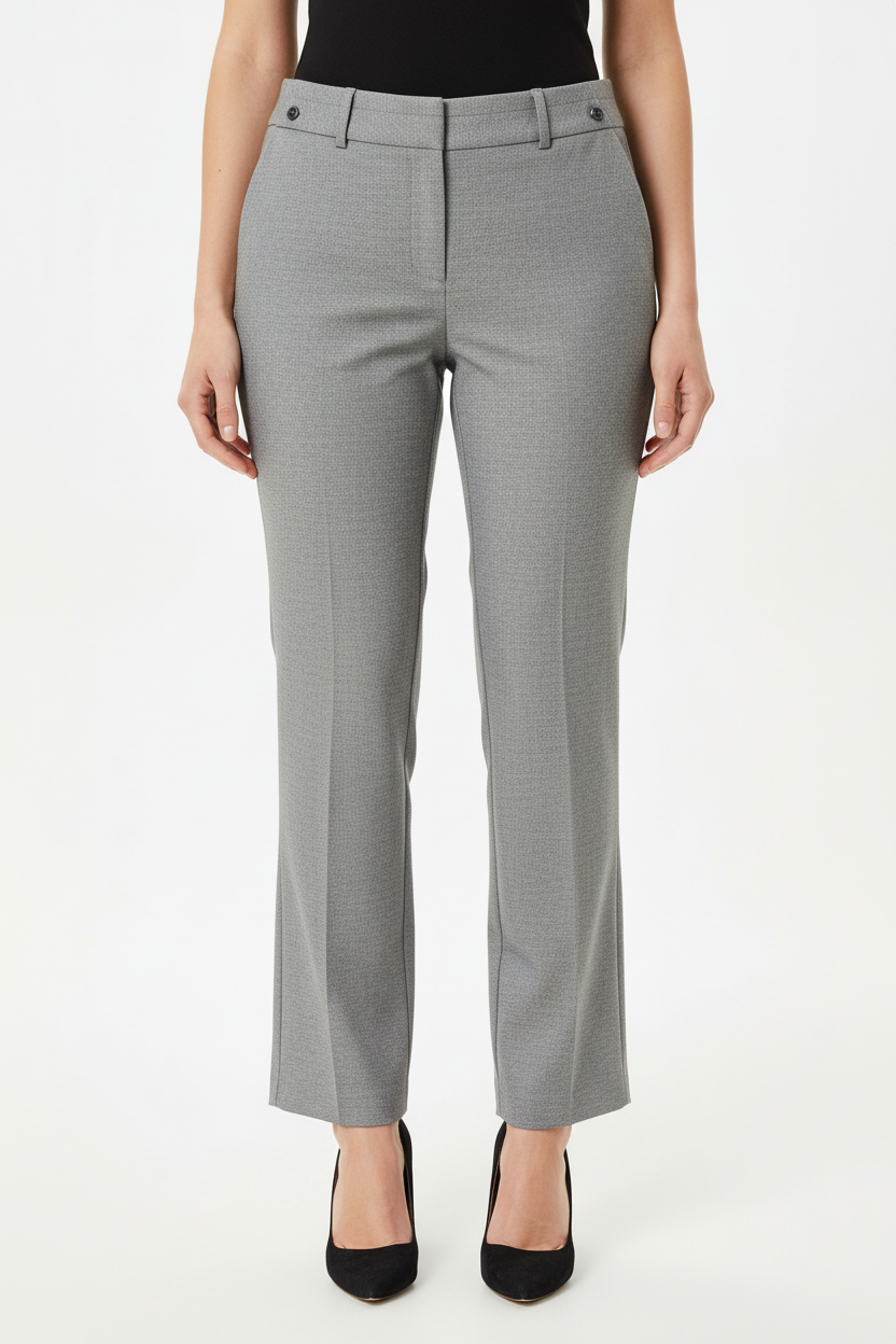 The modern fit strikes that perfect balance—tailored enough to look sharp, but with just the right amount of room to move comfortably through your day. The subtle houndstooth pattern adds visual interest without being loud, and the cropped length hits right at the ankle for a contemporary silhouette that works beautifully with heels or flats. Classic details like the tab waistband with button closures and front pockets keep things timeless and functional.
