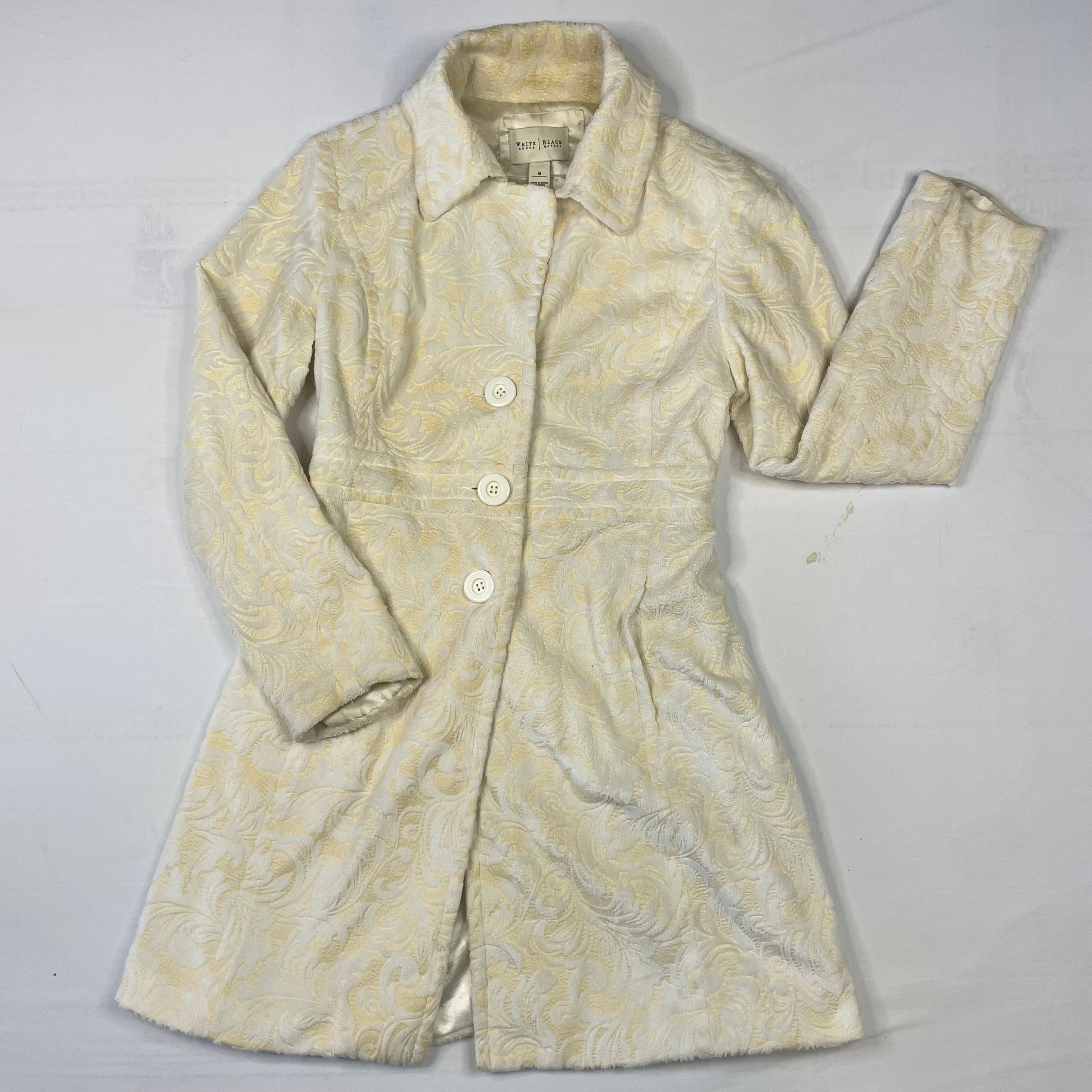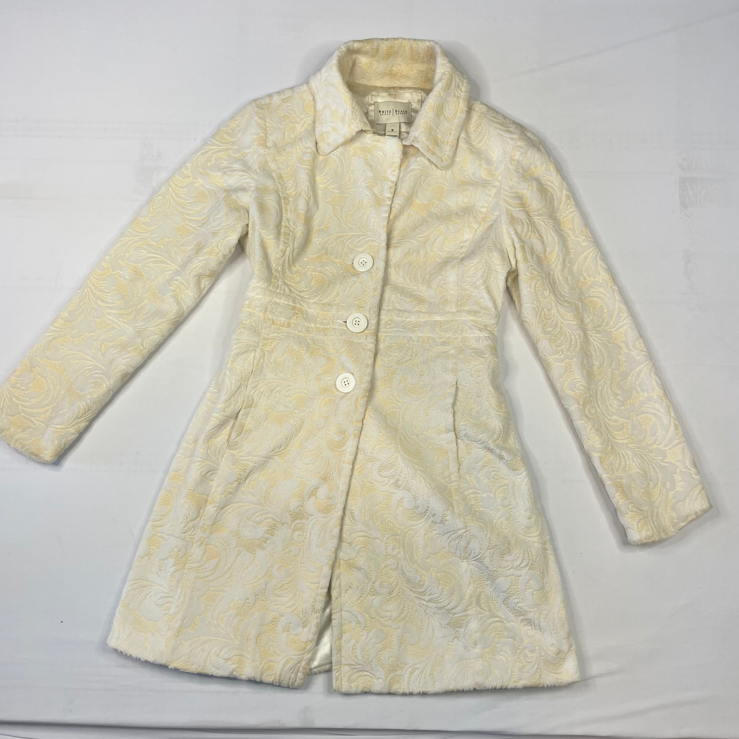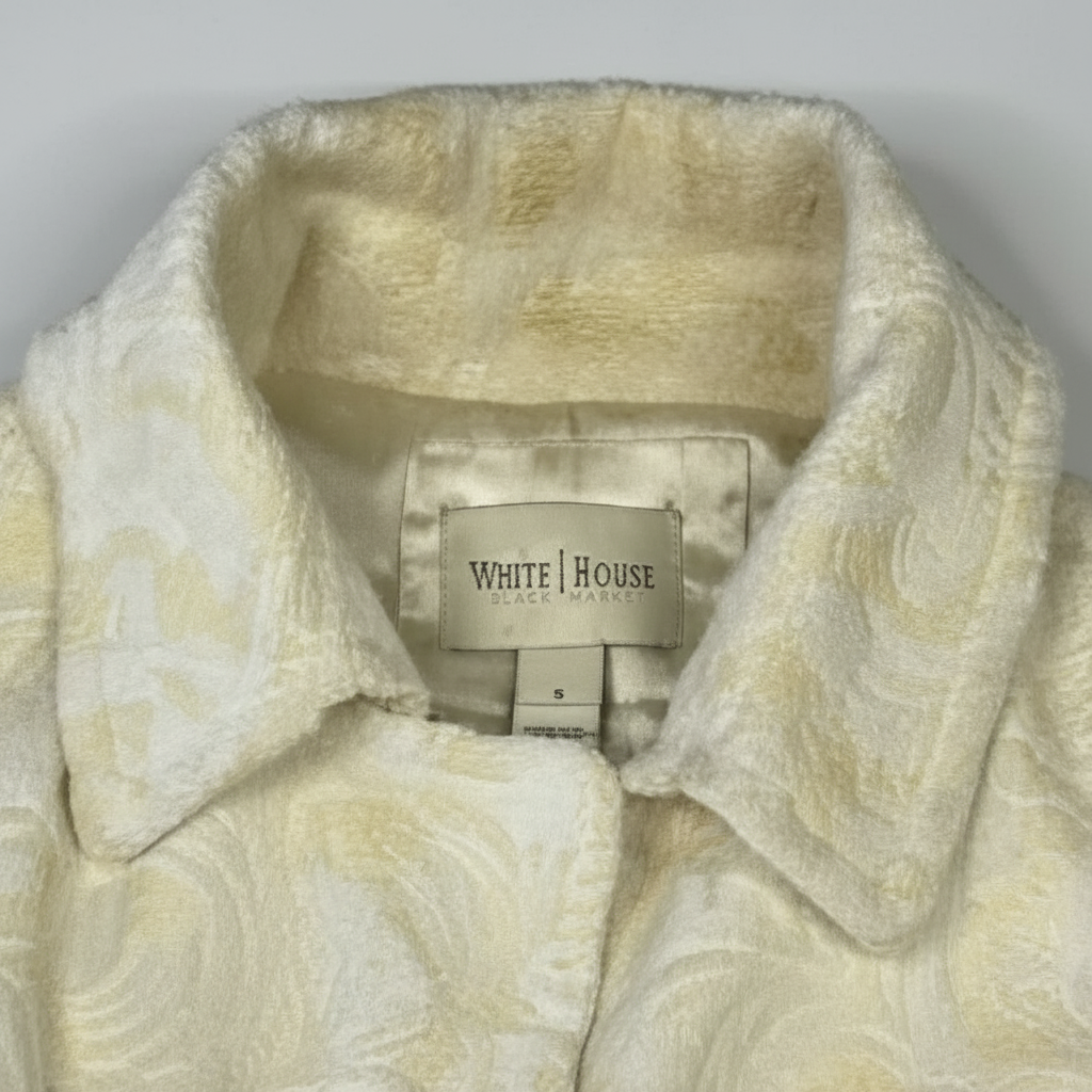 Luxurious White House Black Market faux fur coat in a gorgeous ivory shade. This plush coat is perfect for staying warm and stylish during the colder months with its soft, cozy texture and elegant silhouette.