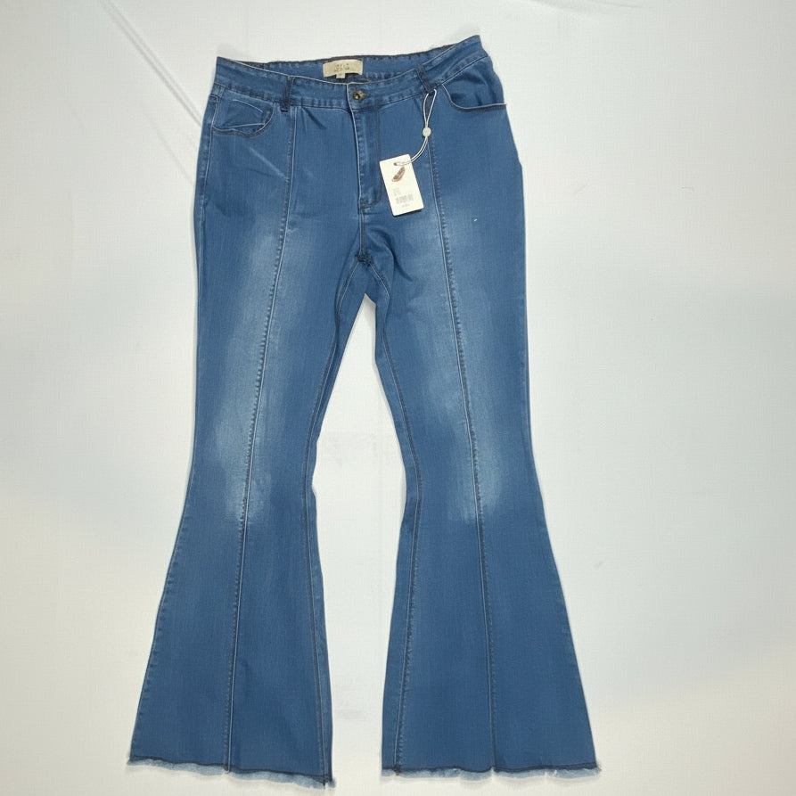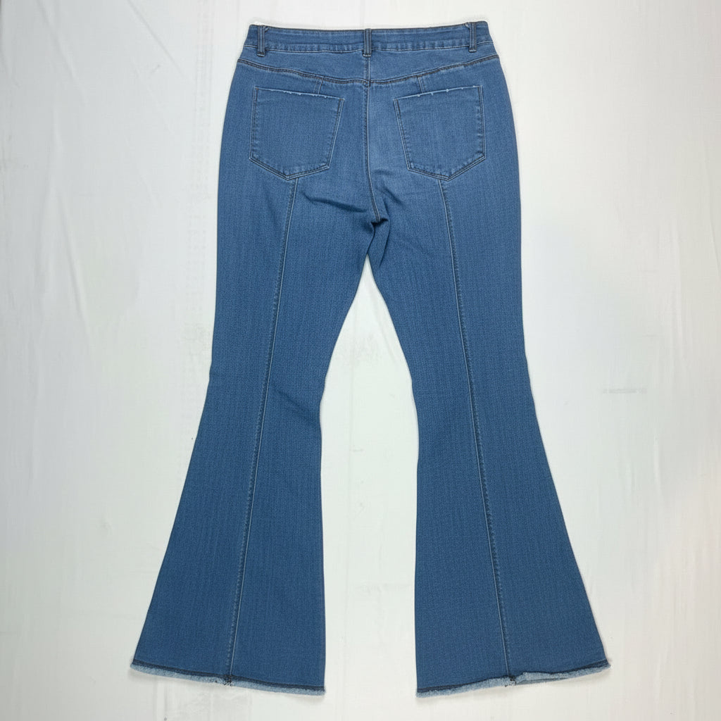 Bring back the '70s vibe with these perfectly flared jeans in a gorgeous mid-blue wash. The flattering flare silhouette elongates your legs while the raw hem adds a modern, edgy touch that keeps things fresh and current.