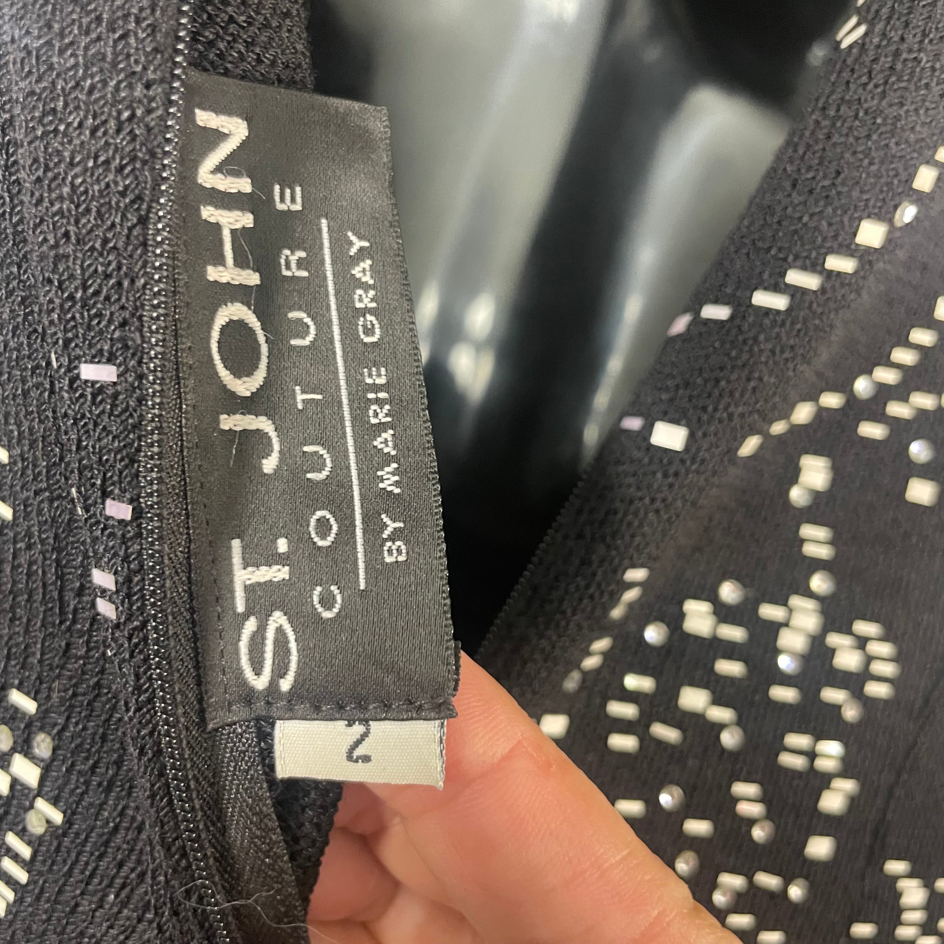 St. John Black Rhinestone Embellished Cocktail Dress - Size 2