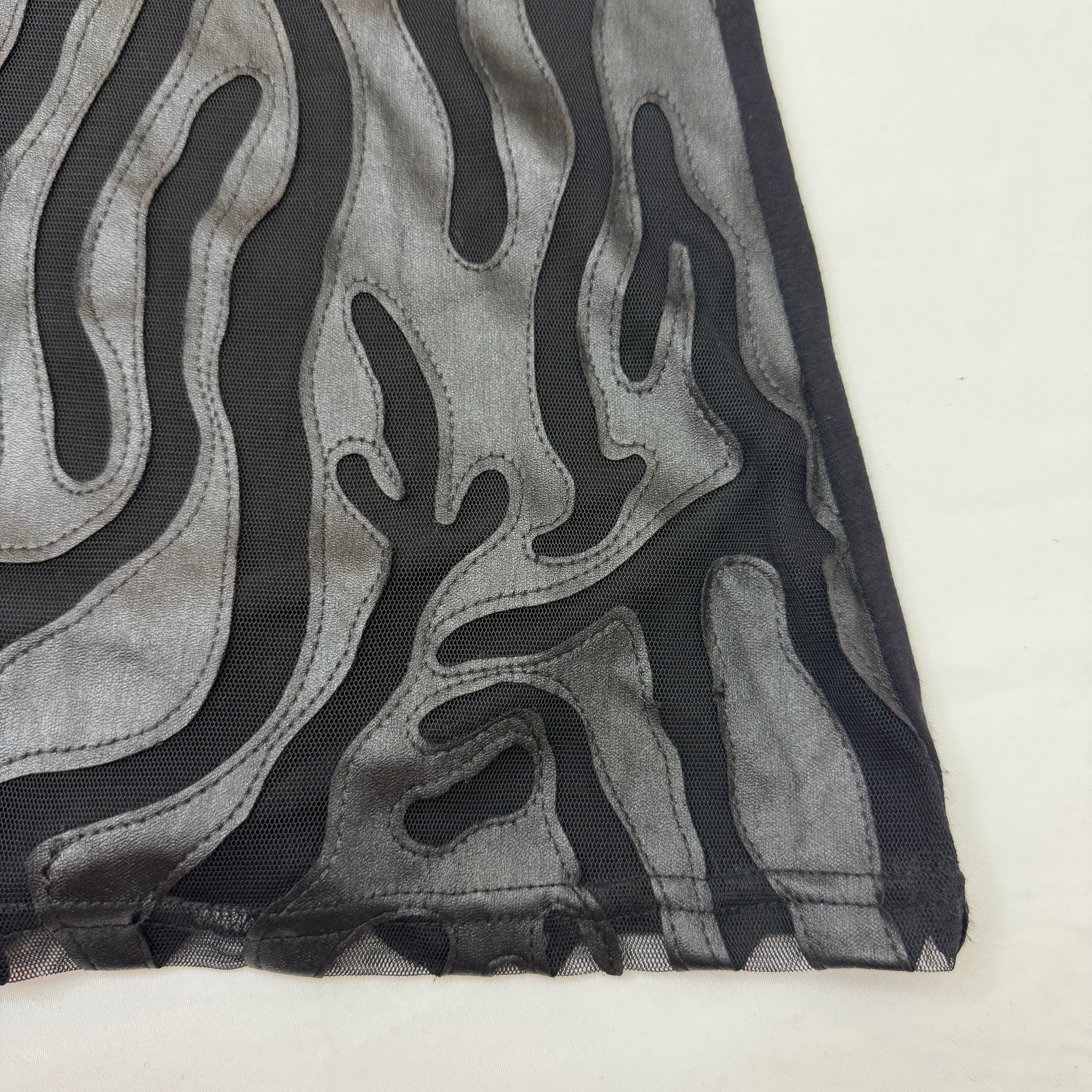 - Black leather and sheer mesh construction