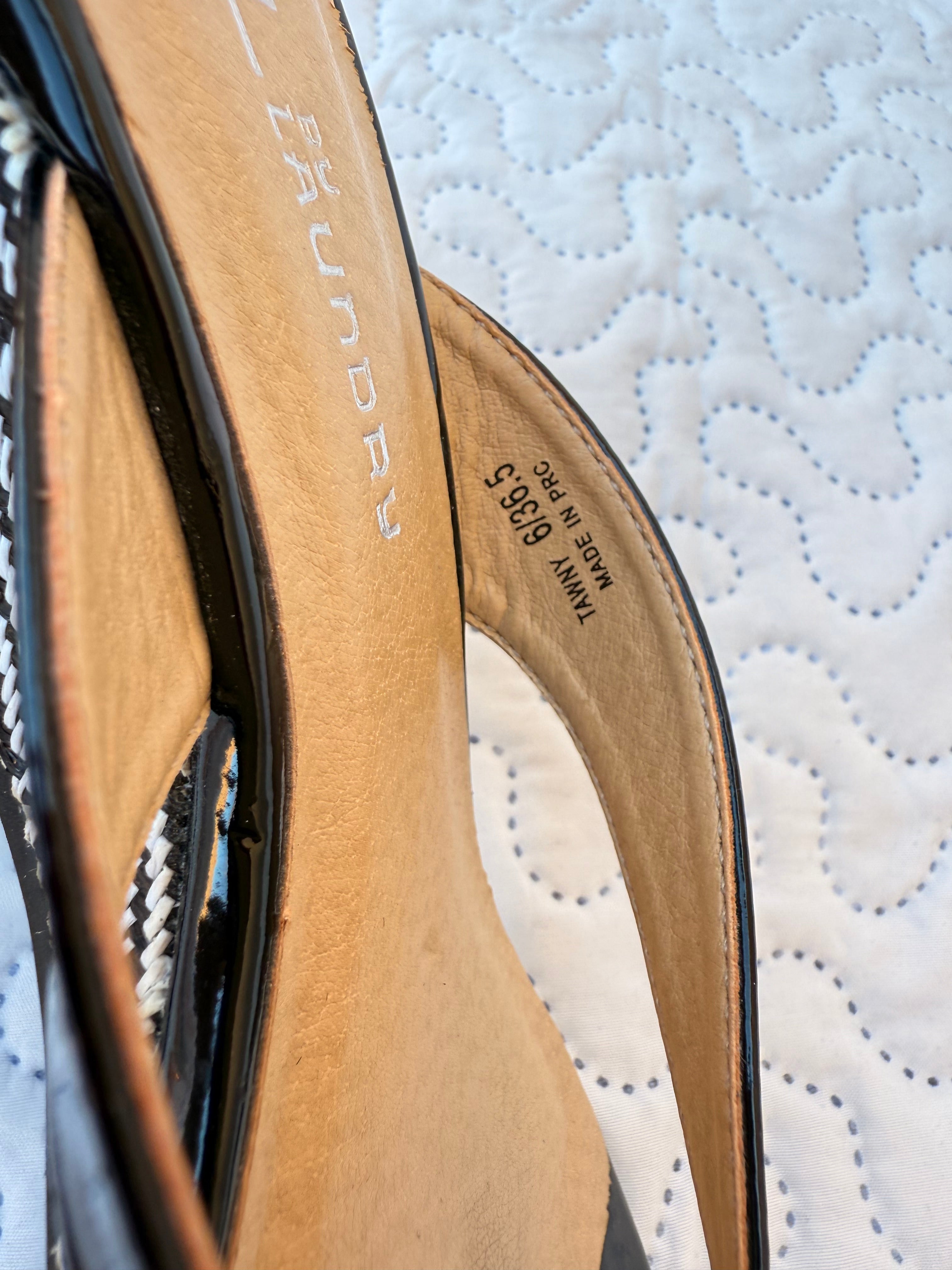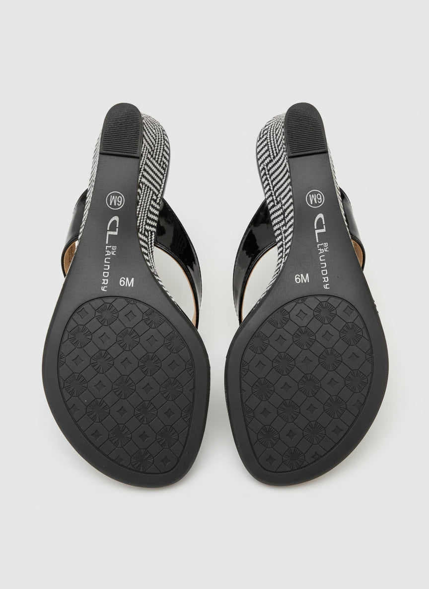 CL by Laundry Black Patent Slide Sandals with Houndstooth Heel - Size 6M
