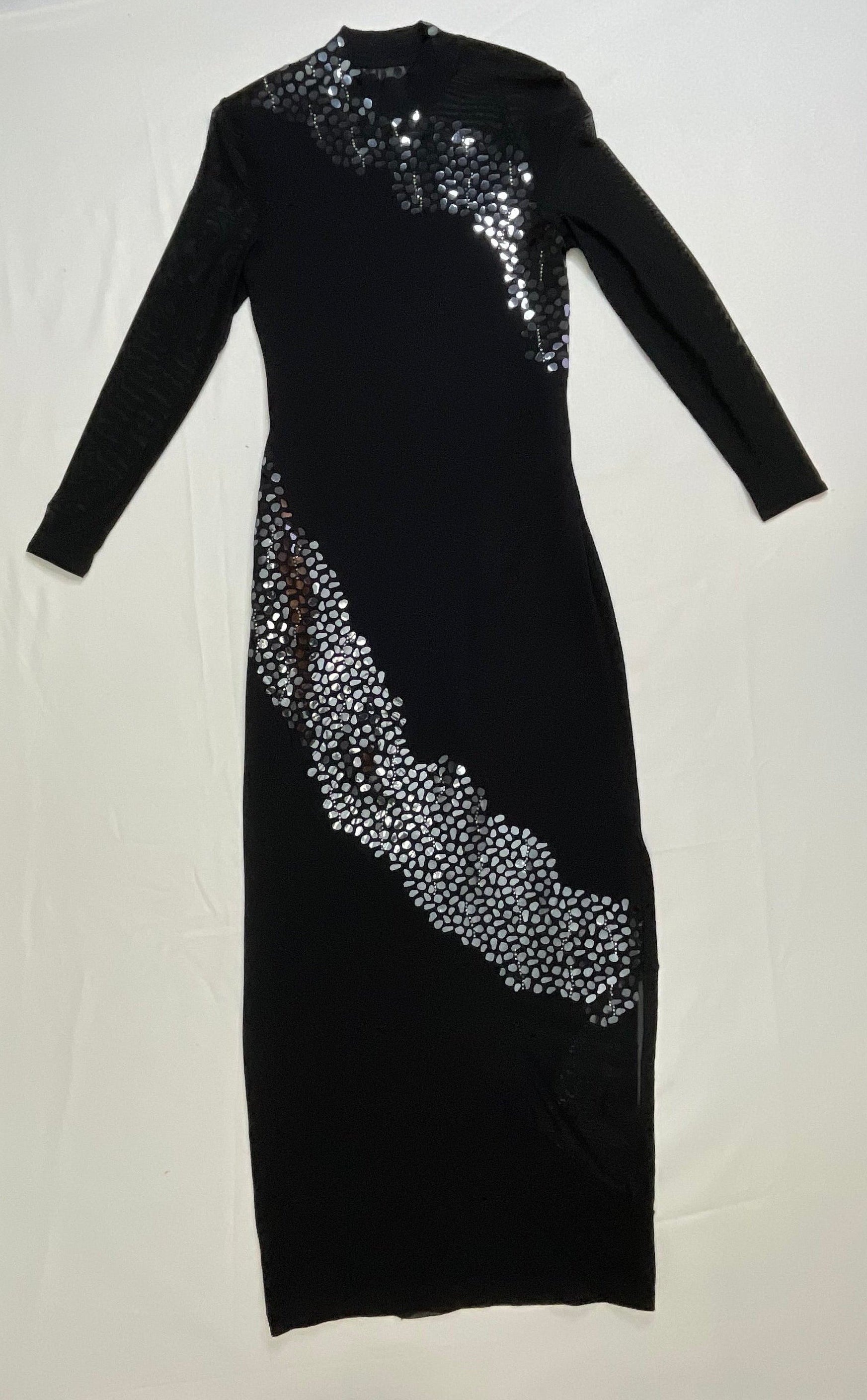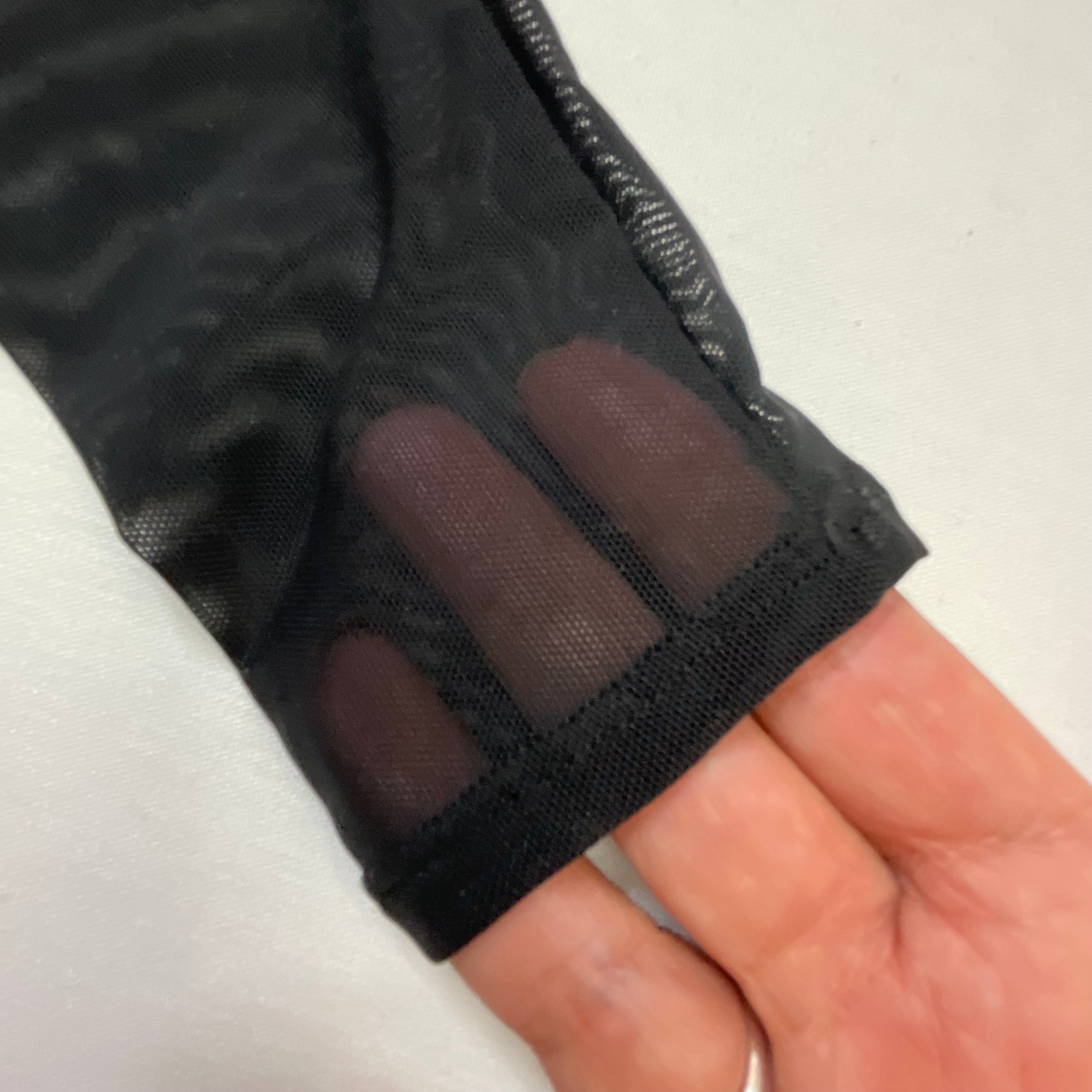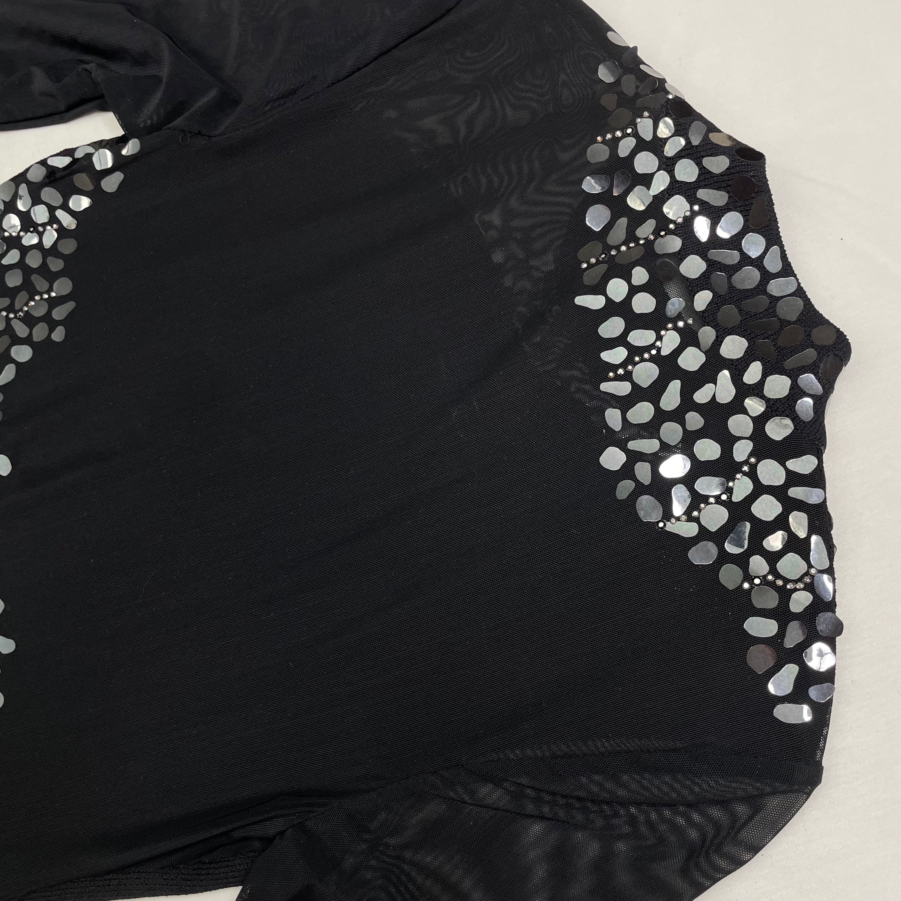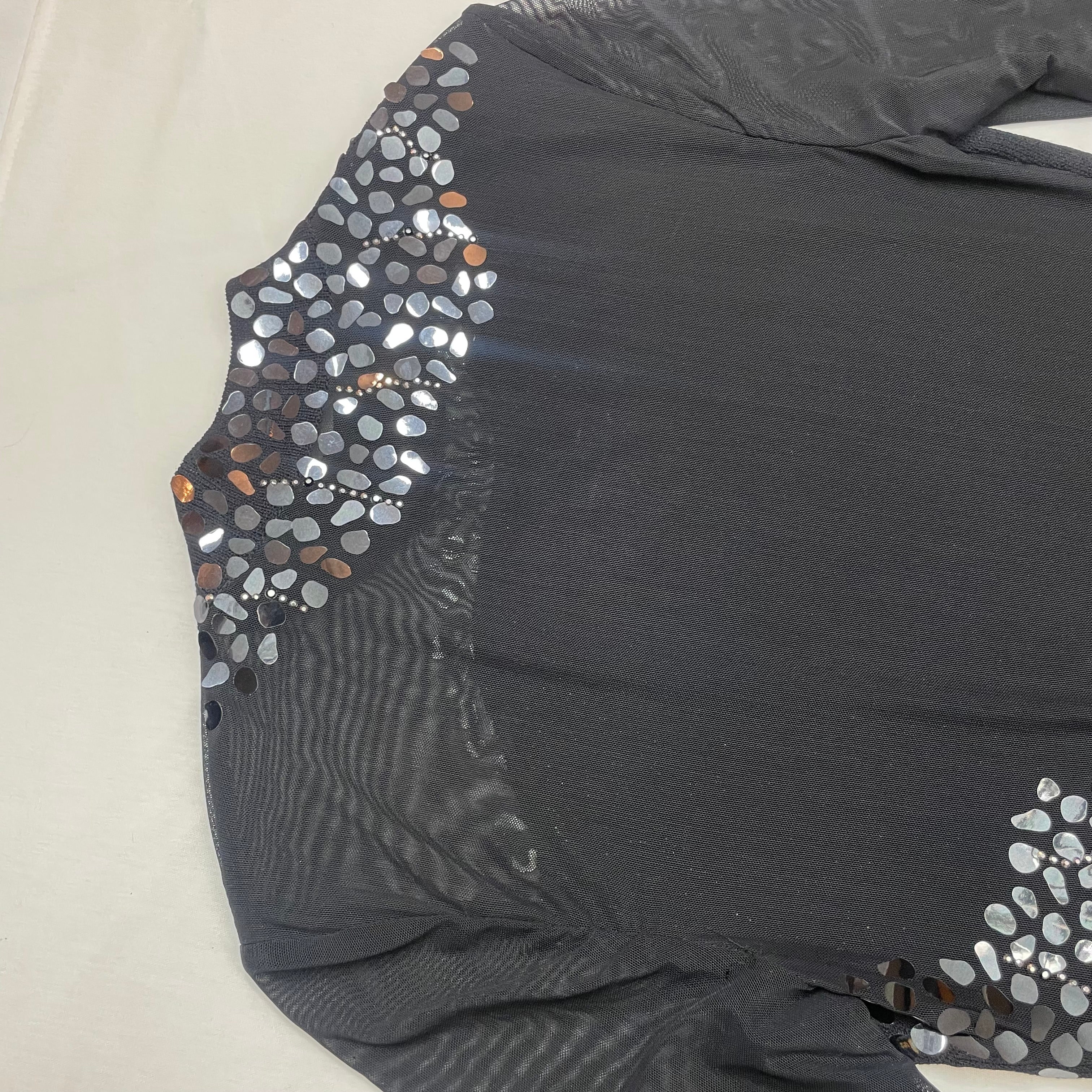 - Sheer mesh long sleeves for elegant coverage