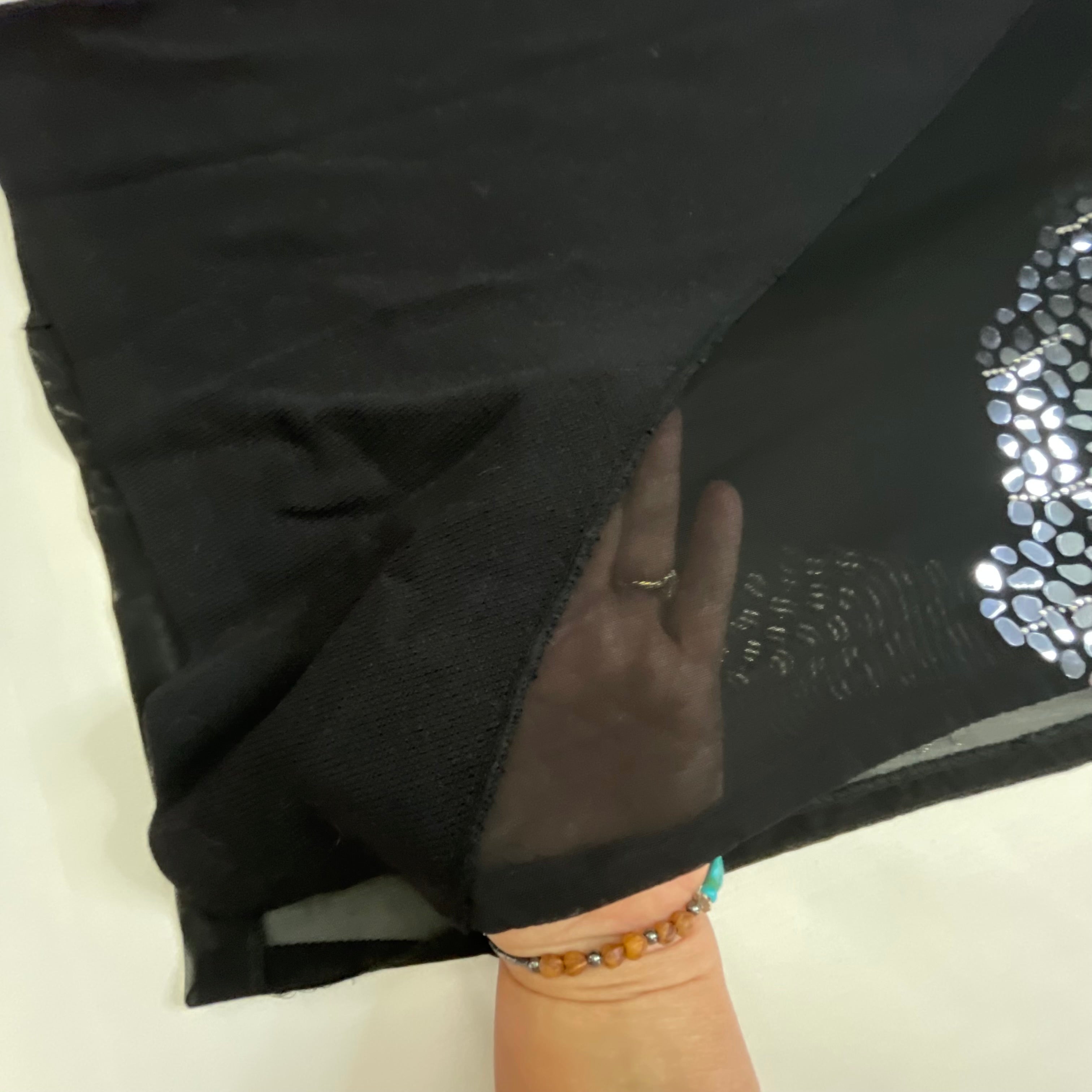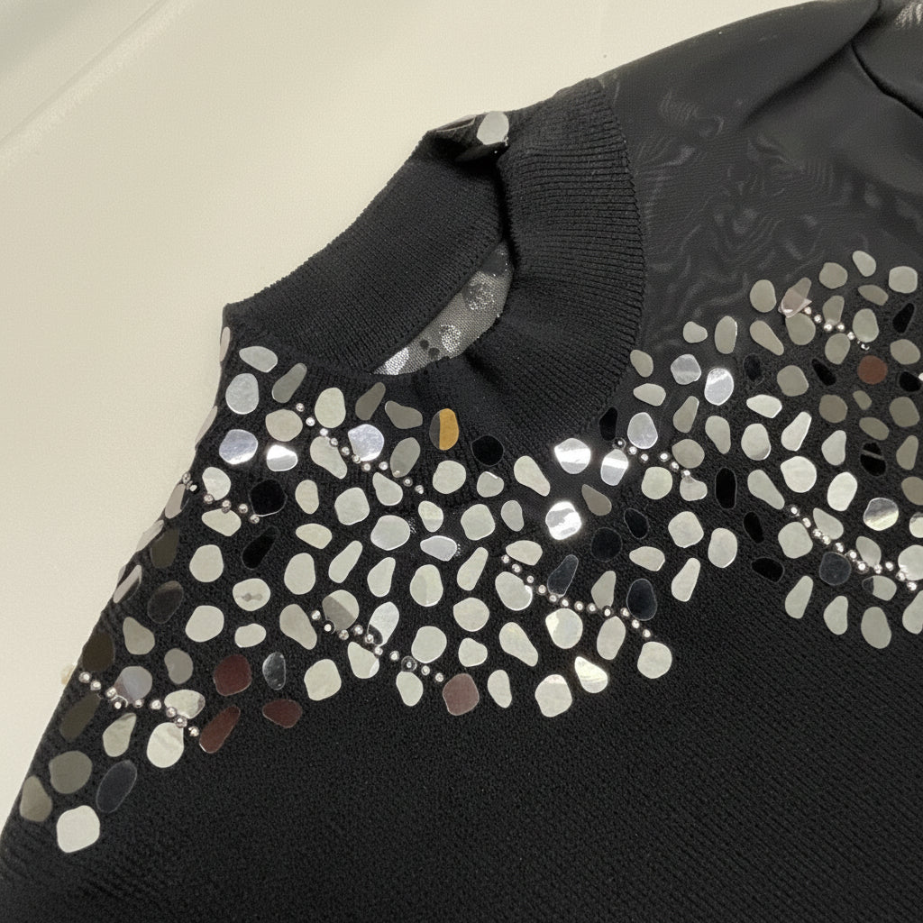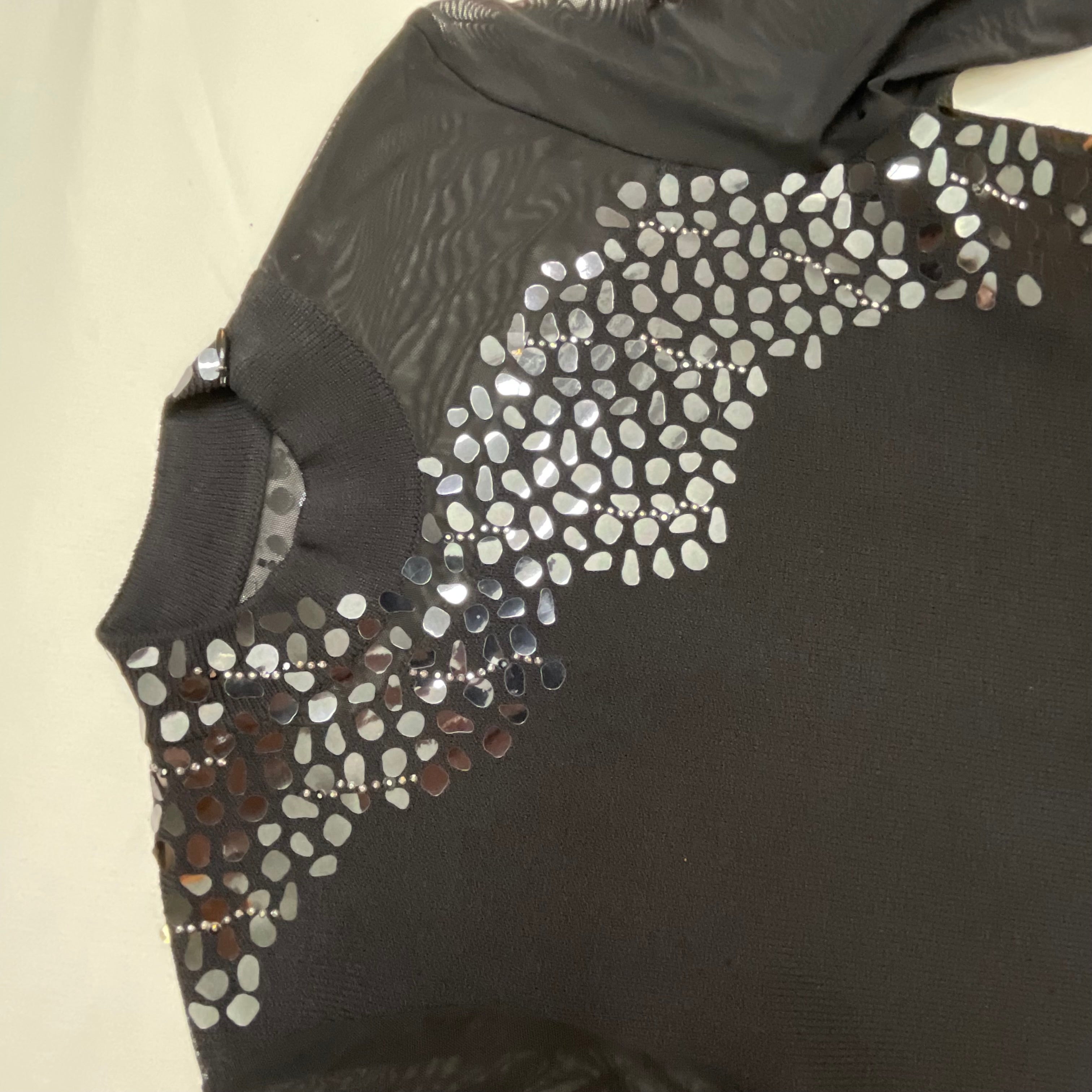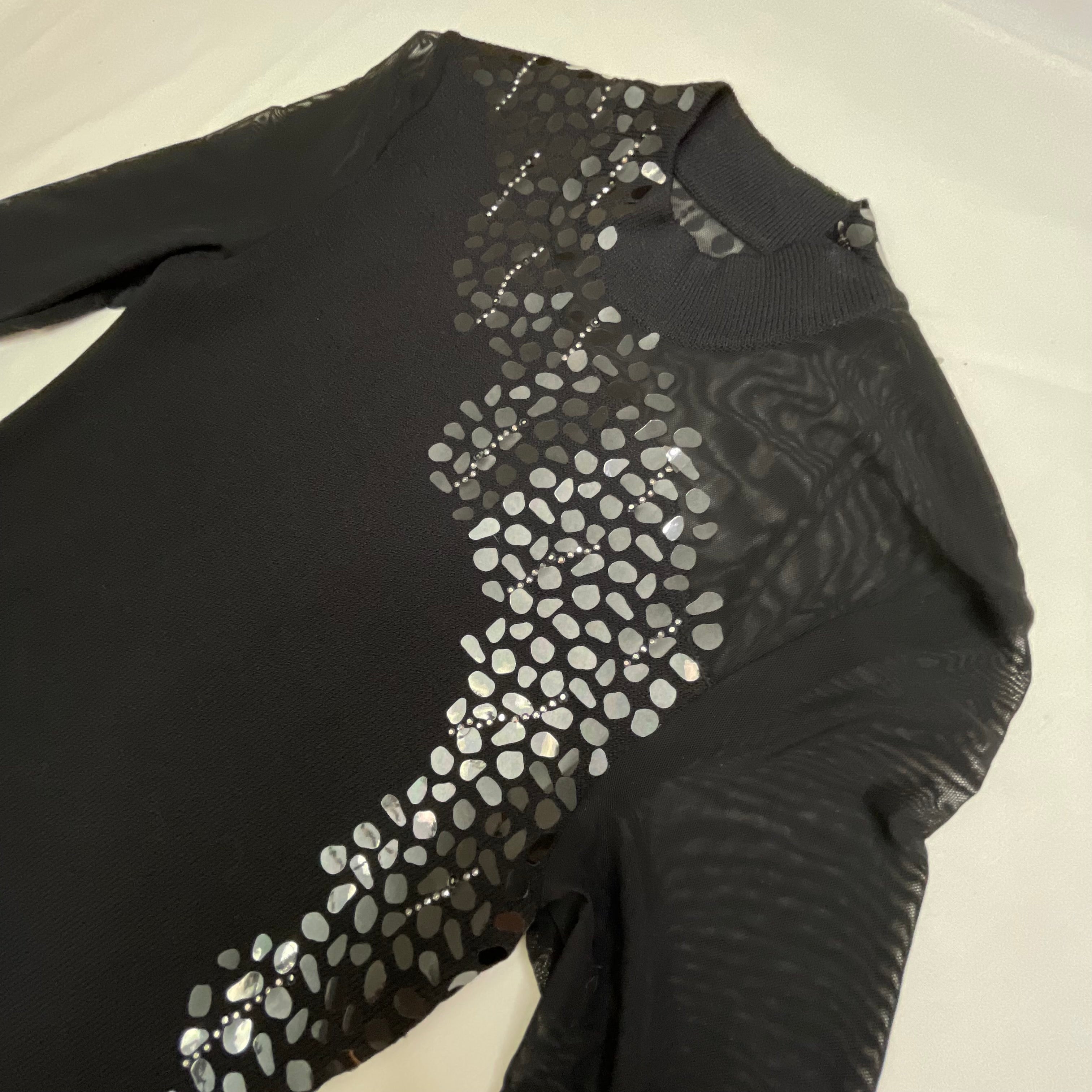 - Sheer mesh long sleeves for elegant coverage