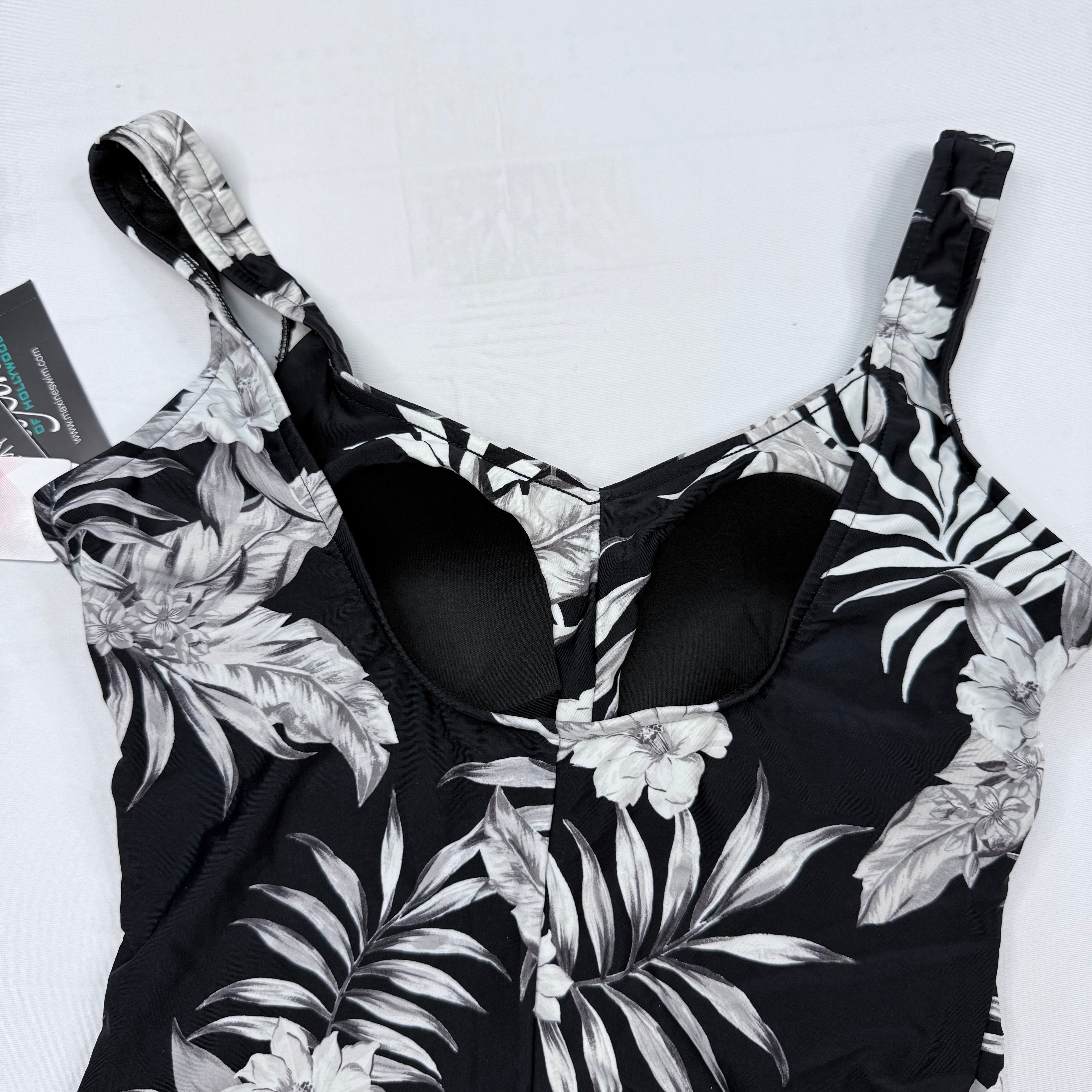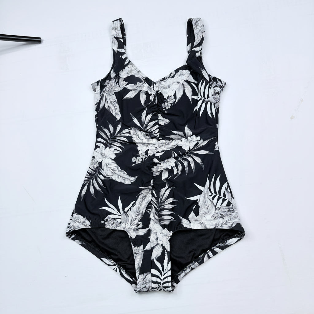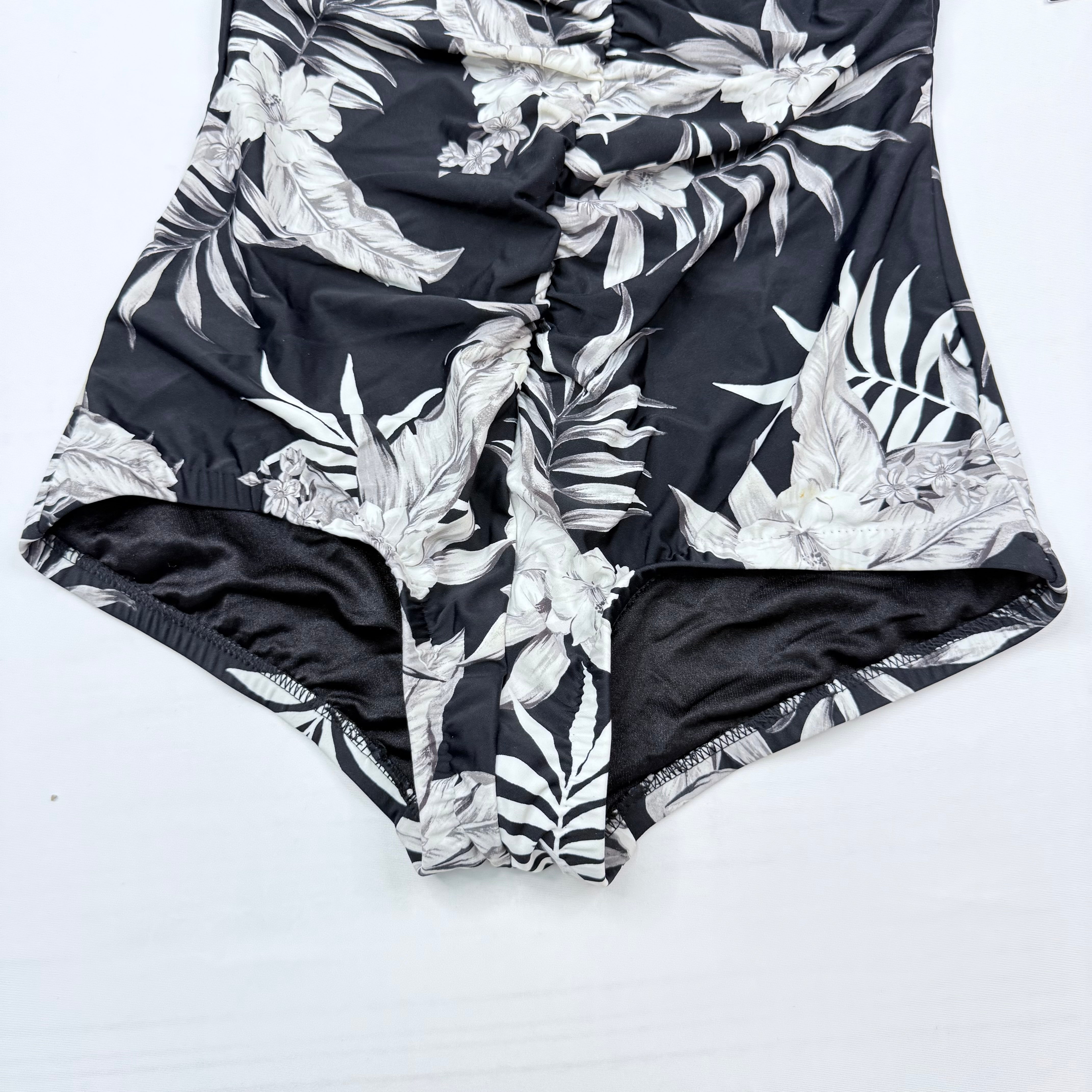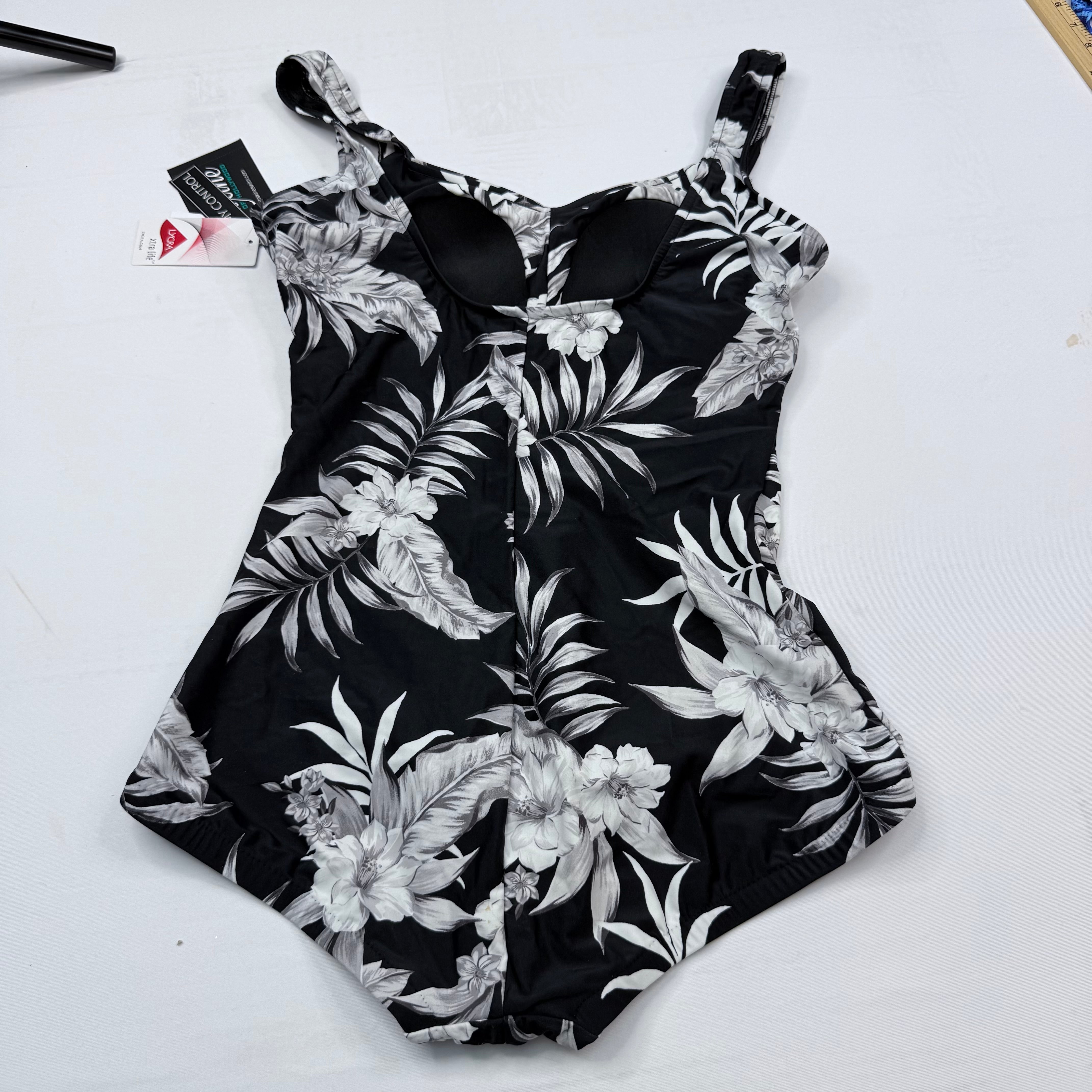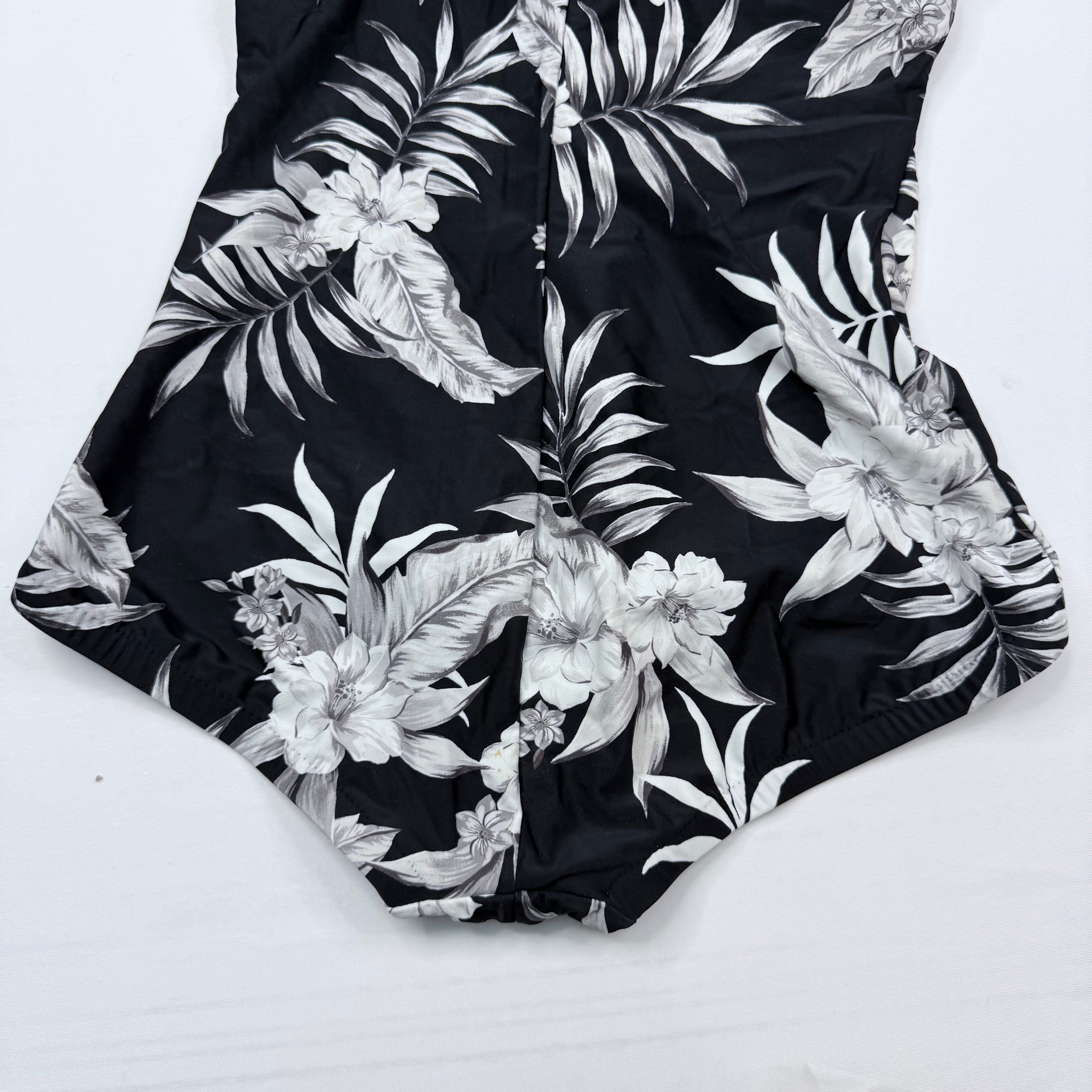 Maxine of Hollywood Tropical Palm Print One-Piece Swimsuit - Black & White US 16