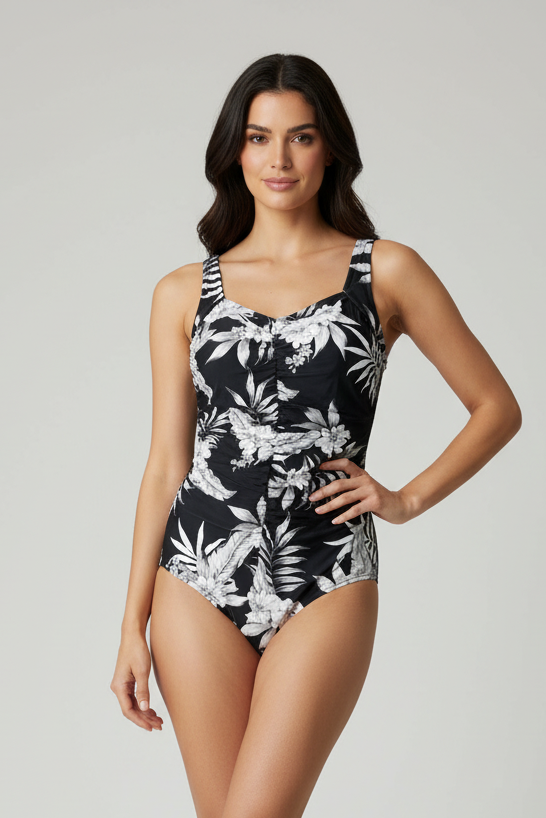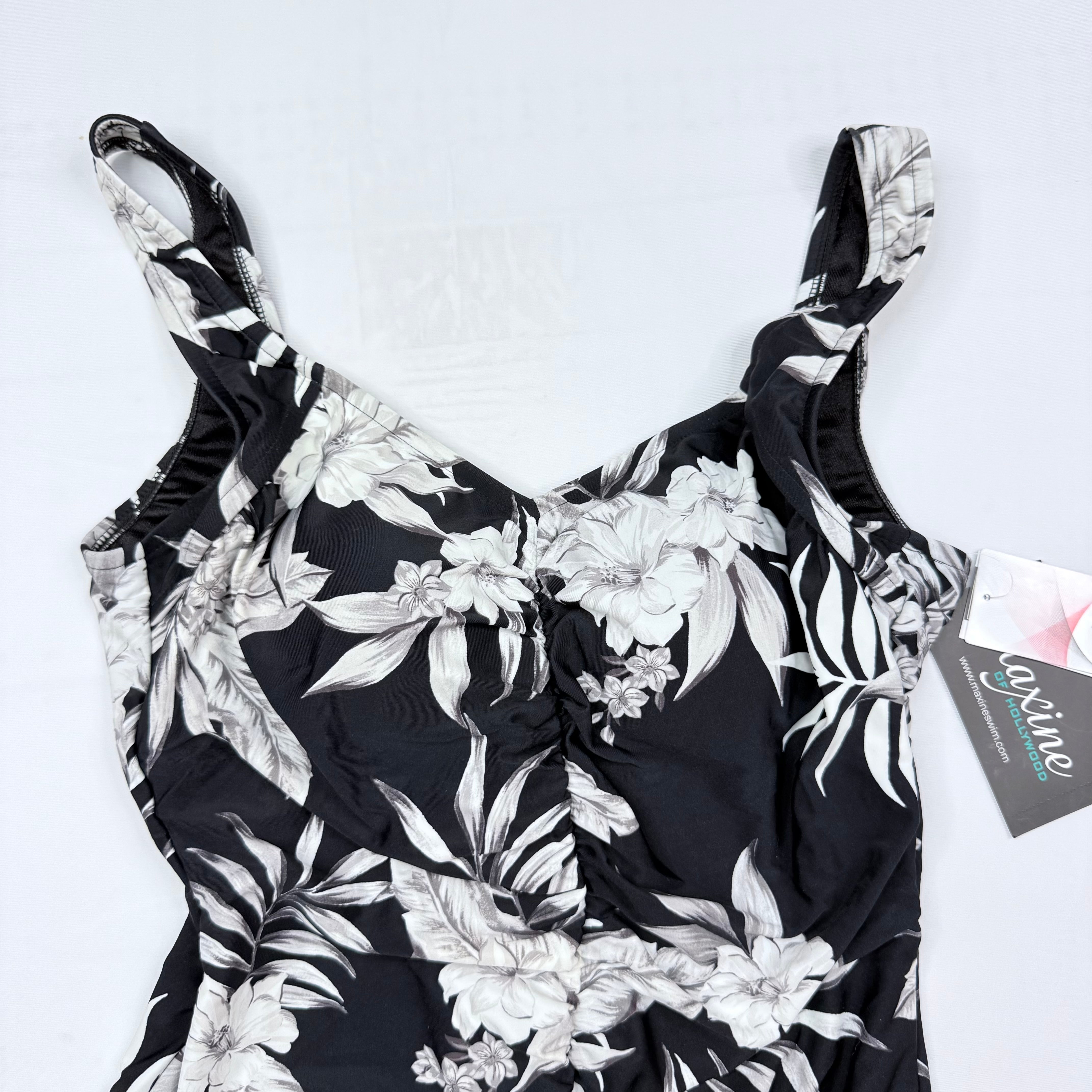 The sweetheart neckline with underwire support provides lift and shaping, while the adjustable straps let you customize the fit for all-day comfort. The ruched detailing at the sides creates a flattering, slimming effect that looks amazing on every body type. The full coverage design keeps you feeling confident and comfortable whether you're lounging poolside or taking a dip in the ocean. Maxine of Hollywood is known for quality construction and flattering fits, and this suit delivers on both fronts.